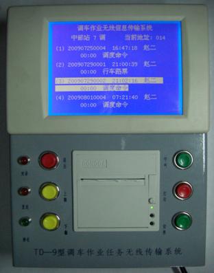 TD-9S型 機(jī)車收信機(jī)是機(jī)車作業(yè)任務(wù)下達(dá)系統(tǒng)的組成部分,它的主要功能是接收調(diào)度員下達(dá)的通知單信息(包括調(diào)車作業(yè)通知單、調(diào)度命令和路票),顯示并可打印出來,同時(shí)還可以和調(diào)度主機(jī)進(jìn)行語音通話。