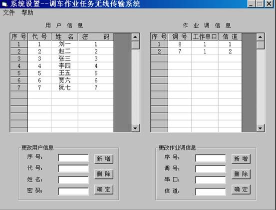 1. 左側(cè):調(diào)度員信息設(shè)置(用戶信息),包括代碼、姓名和密碼