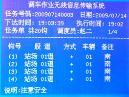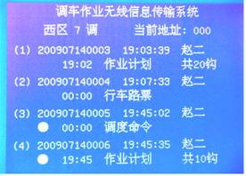 機車收信機能夠顯示4條作業(yè)任務(wù),每接收到一條新的任務(wù),畫面上就刪掉一條較早的任務(wù),所以收信機顯示的永遠(yuǎn)是最新的四條任務(wù)數(shù)據(jù)。